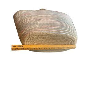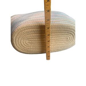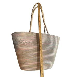 Beach Bag blue pink stripes with tan fabric and woven handles Large