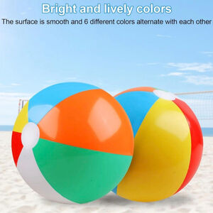 This listing is for a new, two-pack of 20-inch inflatable beach balls. Each ball is made of ultra-strong thermal carbon-toughened polymeric PVC, featuring a smooth surface with six alternating bright colors (red, orange, yellow, light blue, green, and white). They measure approximately 20 inches in diameter when inflated and are lightweight and portable. The balls are designed for use in swimming pools, at the beach, or for summer parties and water games. They arrive new with tags and in their original packaging. No visible imperfections are noted.