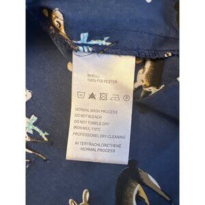 Beach Bash Womens Deer Print Button-Down Top With Lace Collar & Polka Dots