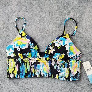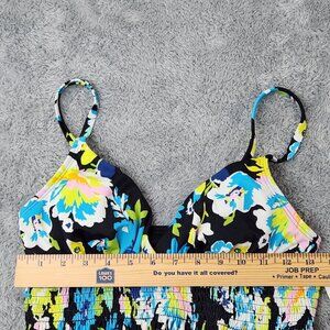 Beach Betty Bikini Top Womens Small Multicolored Floral Smocked Padded Cups