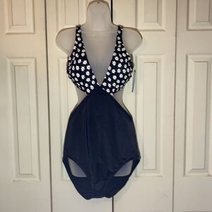 Beach Betty Floral Cut Out Panels Swimsuit L NWT