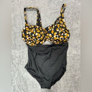 Beach Betty Slimming Control Cut Out Tie-Front One Piece Swimsuit Animal Sz 2X