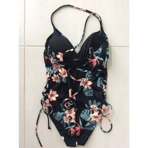 Beach Betty Swimwear One Piece Swimsuit Floral Lace Up Back Sides