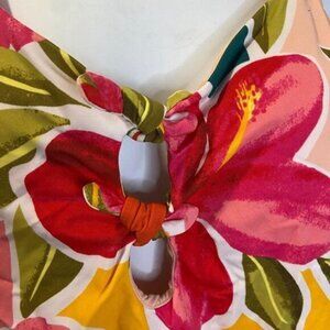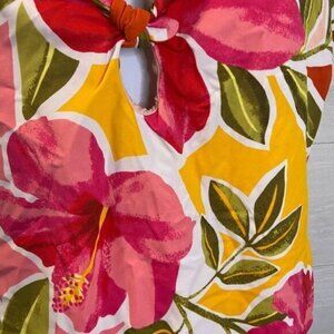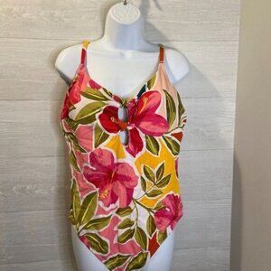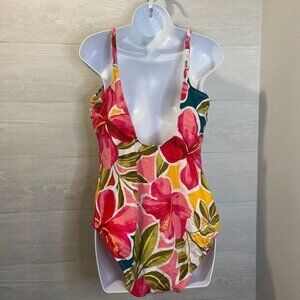 This elegant V-neck one-piece swimsuit features slimming control and a stylish tie front, perfect for a day at the beach or poolside lounging.