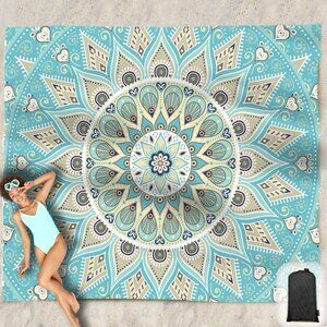 UNIQUE DESIGN, 4 CORNER POCKETS The eye-catching designed beach blanket, with quality in appearance, will make you stand out on the beach! You can easily find your family and friends on the beach without worrying about getting lost. At the same time, the beach mat is designed with four built-in corner pockets that prevent the blanket from blowing away.