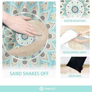 SANDPROOF, WATER RESISTANT & SOFT The beach blanket is made of sand resistant, waterproof fabrics. Just shake the blanket and it easily gets rid of all the sand once.Sand does not filter through. The Silky Soft Fabric let you lie comfortably while enjoying a pleasant day on the beach.