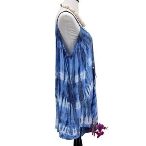 Fun Tie Dye Patterns Cool and Comfortable Summer Shorts Wide Leg Mini Romper with POCKETS adjustable shoulder straps. V Back Scoop Neck with V Lace UpGreat Swim Suit Cover Up Beach, Poolside, River or Lake
