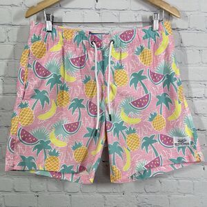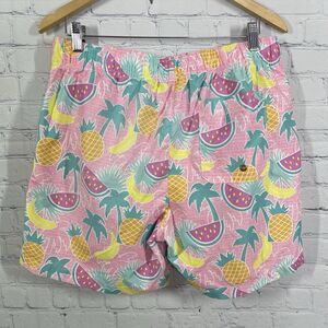 Beach Bros Surf Shop Shorts Mens Large Pink Tropical Multicolor Swim Trunks Lined Brief