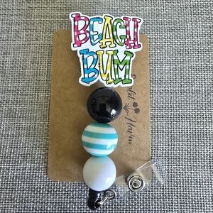 Beach Bum Summer Stripe Polka Dot Beaded Retractable Name Badge ID Reel Holder