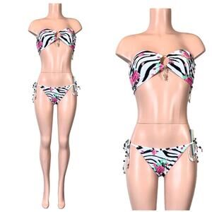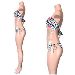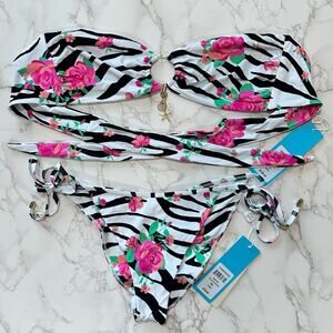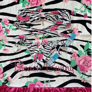 Beach Bunny Bethany Bandeau Top & Constance Tie Side Skimpy Bottom - Zebra Rose SZ XL $190