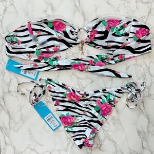 Beach Bunny Bethany Bandeau & Constance Tie Side Bottom - Zebra Rose SZ XL $190
