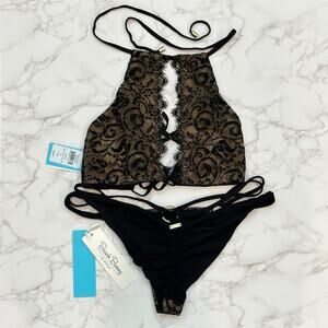 Beach Bunny Gunpowder and Lace High Neck bikini top L & Skimpy Bottoms M $289