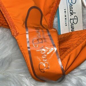 🆕 Beach Bunny Kate Full Bottom Size XS Orange with Gold Thread Design
