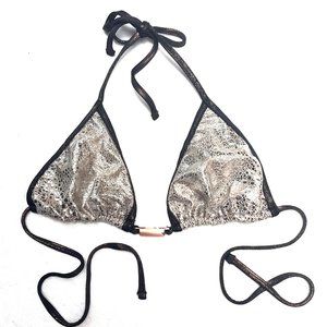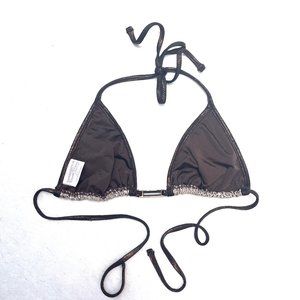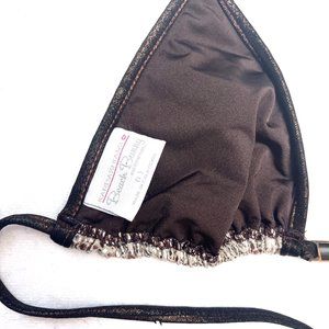 Gorgeous! Beach Bunny Metallic Gold brown side tie metal embelished 2 pc swimsuit. Top size L, bottom XS, you really can control size by ties! I'm S with C cup - fit me just grate! LINED, NON-PADDED, some wear on metal pieces - see Pic # 9, otherwise -Excellent condition