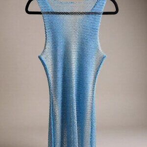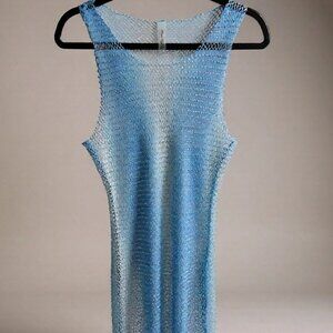 Shimmer in this crystal-embellished, semi-sheer mini with a stunning ocean blue gradient. Sleeveless, scoop neck, and pull-on styling in a stretchy, lightweight net fabric. Unlined for a sultry, beach-to-festival look. 93% polyester, 7% spandex.