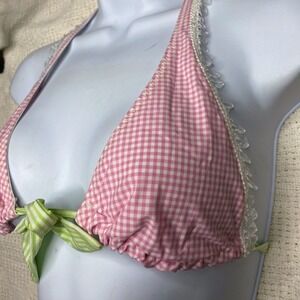 Beach Bunny Pink Gingham Halter Bikini Top nwt