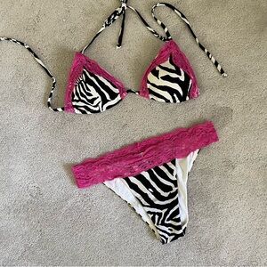 Beach Bunny Pink Lace Zebra Bikini top & bottom, XS, padded top