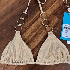 • The Shannon Triangle Top features a shimmery fabric and gold bamboo rings. Pairs perfectly with the Audrey Tango Bottom (included in this set).