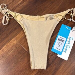 • The Audrey Tie Side Tango Bottom features a shimmery fabric and gold rings. Pairs perfectly with the Shannon Triangle Top (included in set).