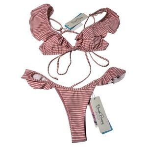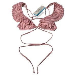 Beach Bunny Shanina Shaik Stripe Ruffle Wrap Bikini Set Medium NWT