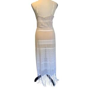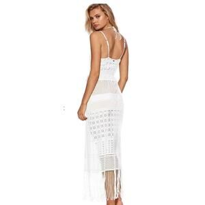 This Beach Bunny maxi dress is the perfect coverup for your favorite swimsuit, the crochet style and fringe detail make this piece a must have vacation and summer season!
