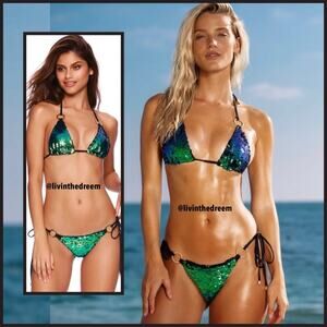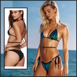 Beach Bunny Swimwear Siren's Song Sequin Bikini XXL Top L Bottoms Set $250