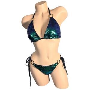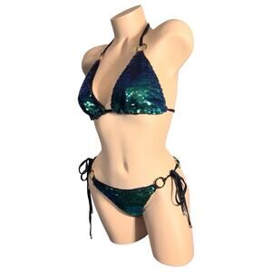 Beach Bunny Siren Song Green Sequin Bikini SZ XXL Top L Bottoms $250