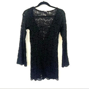 Beach Bunny Swimwear Marilyn Lace Up Tunic Dress Cover Up Black Long Sle…