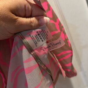 Beach Bunny Swimwear Neon Pink Tan Tiger Stripe Cover Up Shirt L Swim Beach