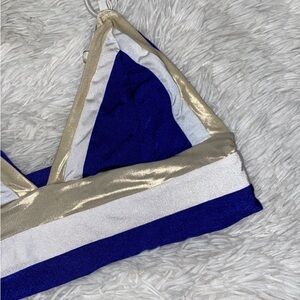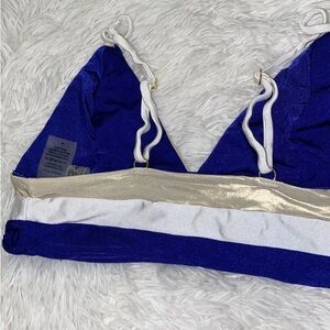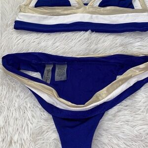 Like new! Worn once on vacation.Beach bunny swim set. Navy blue white and gold. Bottoms xs and top medium but runs small.
