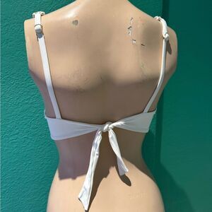 Stylish white bikini top with mesh detailing. Perfect for a chic beach look.