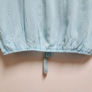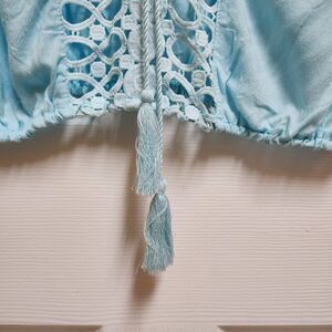 Beach By Exist Top Womens Large Light Blue Viscose Crochet Lace Cutout Tassel 3/4 Sleeve Cropped Boho Cover Up Casual Coastal Vacation Cruise