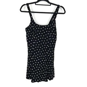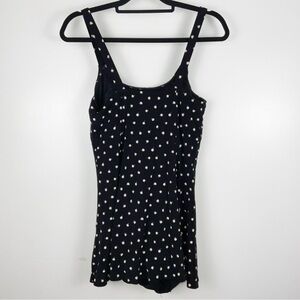 Beach Cabana Vintage Tiny Daisy Print Black Romper One Piece Swimsuit | Size L