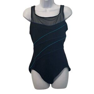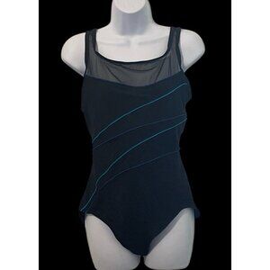 Beach Cabana Woman One Piece Mesh Insert Swimsuit Size 1X 16W/18W Bra No Pads Black