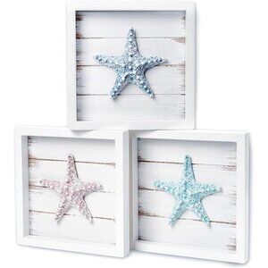 🧿SUMMER ON A WALL: 3D Textured Shells now as a Starfish Trio. You don’t have to live by the beach to enjoy all its pleasures. This beachy bathroom wall decor set features three hand painted starfish in delicate pastel hues