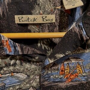 Hawaiian Shirt with lobster on beach design! Really unique look with some solid dark tones too.