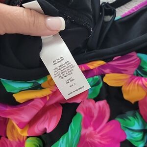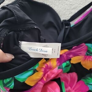 Beach Diva Tankini Swimsuit Ruffle Top ~ Sz 10 ~ Black ~ Floral
