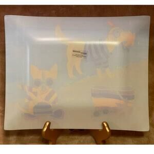 Brand new, Beach Dogs, Geoff Allen Design Glass Plate , released by Mason Studios NY City. Cute glass plate is perfect for summer parties featuring cute dogs playing at the beach. The plate sides are curved slightly upward, measures 12.75" across, 10" wide, 1" in height. Plate is dishwasher safe, not for use in the microwave. Comes from a smoke free, pet free home.