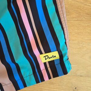 The Beach Dweller Swim Short is your new go-to for leisurely days in the sun. These vintage trunks are made of 100% poly in a comfort short / wide fit. Every pair is equipped with a tearaway size tag for max waist comfort. Meet your new favorite beach trunk. Pair it with your favorite Duvin tee and hat.