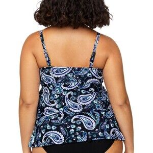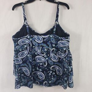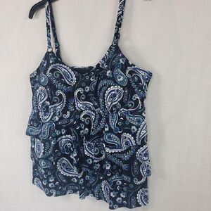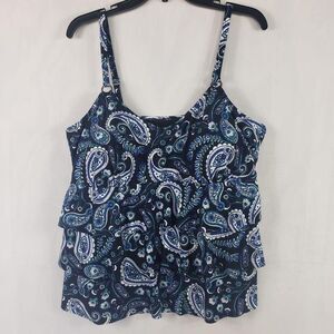 Beach Escape Woman Tankini Top Womens 20W Navy Blue Paisley Tiered Ruffle Swim