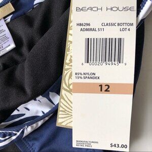 Beach House Swim Bikini Navy Blue Floral Band Bottoms 12 NWT