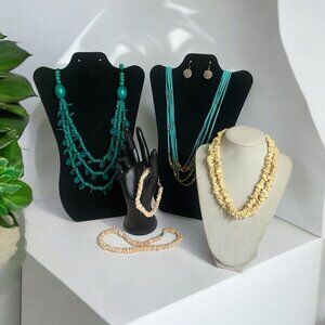 Beach Jewelry Lot 6 pc Shell Coconut Wood Leather