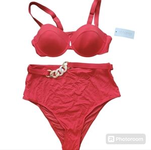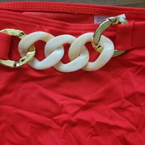 Beach Joy Red Gold Chain High Waist Bikini Set Size Large