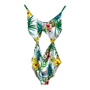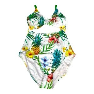 Beach Joy one piece swim suit with cut outs size M. Tropical, pineapple, floral