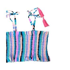 Beach Lingo Bathing Suit Top Sleeveless Striped Smocked Multicolor Girl 14 NWOT