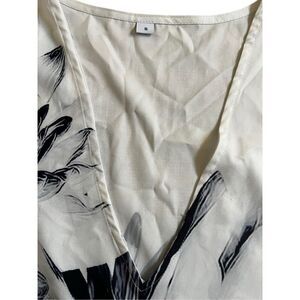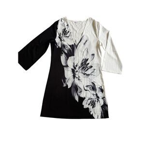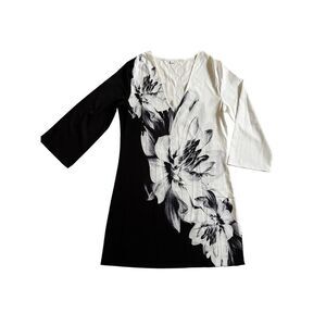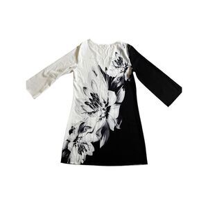 Silky semitransparent Black and White Striped floral Long Sleeve Bodycon Dress Size small