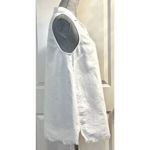 Beach Lunch Lounge 100% Linen Sleeveless Button Tunic Top Fringe Womens Small
