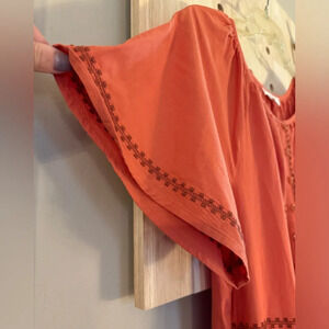 Tiered Skirt Look, Embroidery Details, Pullover, Short Sleeve, Buttons on Bodice