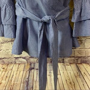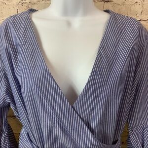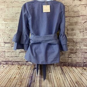 Beach Lunch Lounge Arianna Blue Striped Wrap Bell Sleeve Top