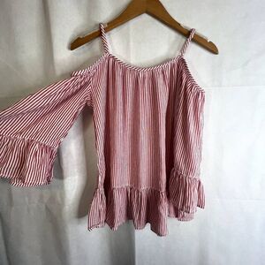 Beach Lunch Lounge Bell Statement Sleeve Blouse Striped Cold Shoulder Size XS